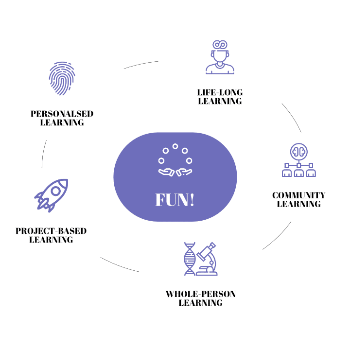 The approach to teaching is that of coaching and facilitation, building knowledge based on the capacities and interests of each individual. Students learn from each other and from expert guest teachers.